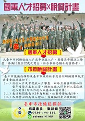(二)由國軍設計脫貧計 畫文宣、意願書及線上表單QRcode等並函發臺中市政府社會局,透過核定公文檢附相關文件、臨櫃擺放文宣等方式達宣傳及招募效果。