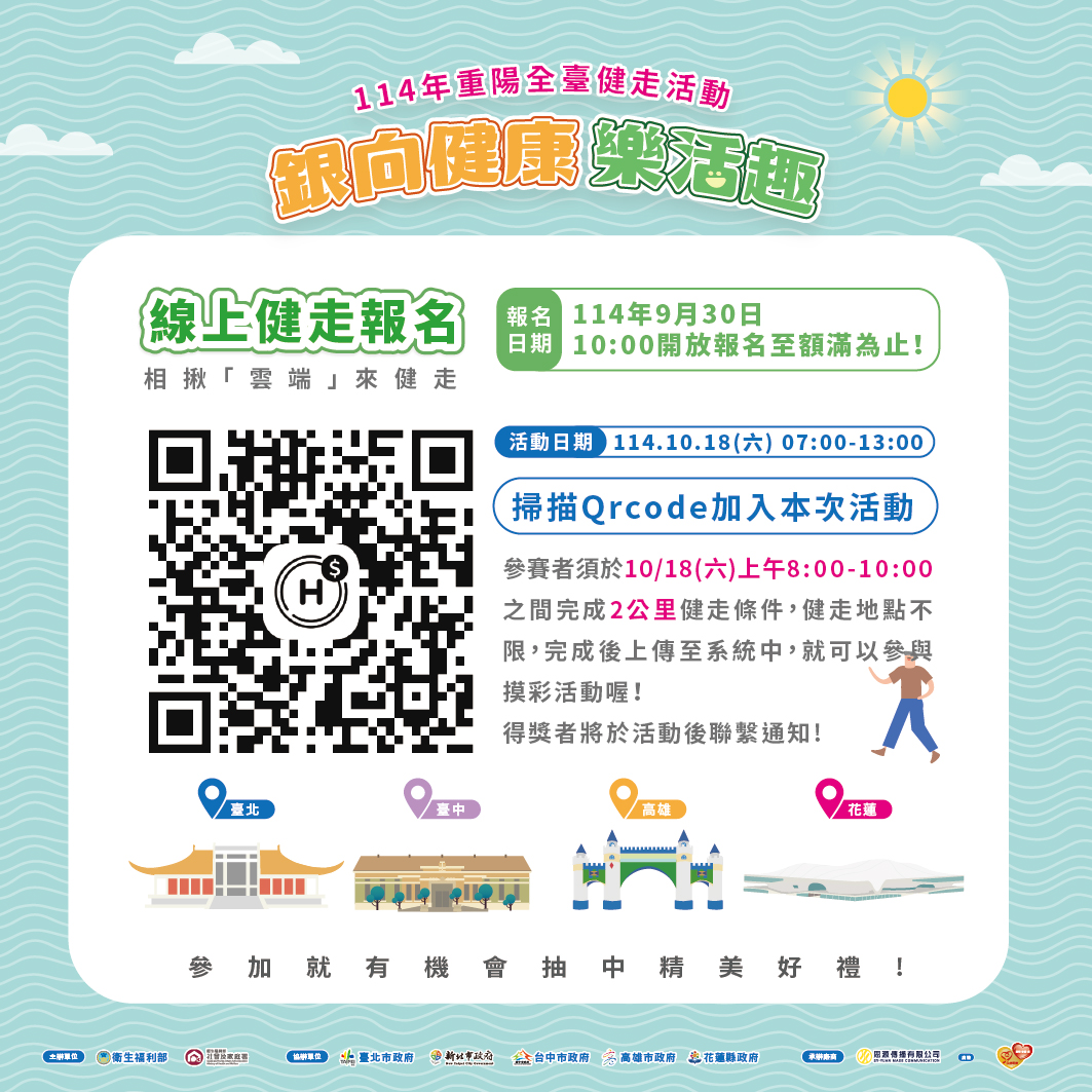 實體健走報名時間:114年9月25日(四)10:00起開放至額滿為止