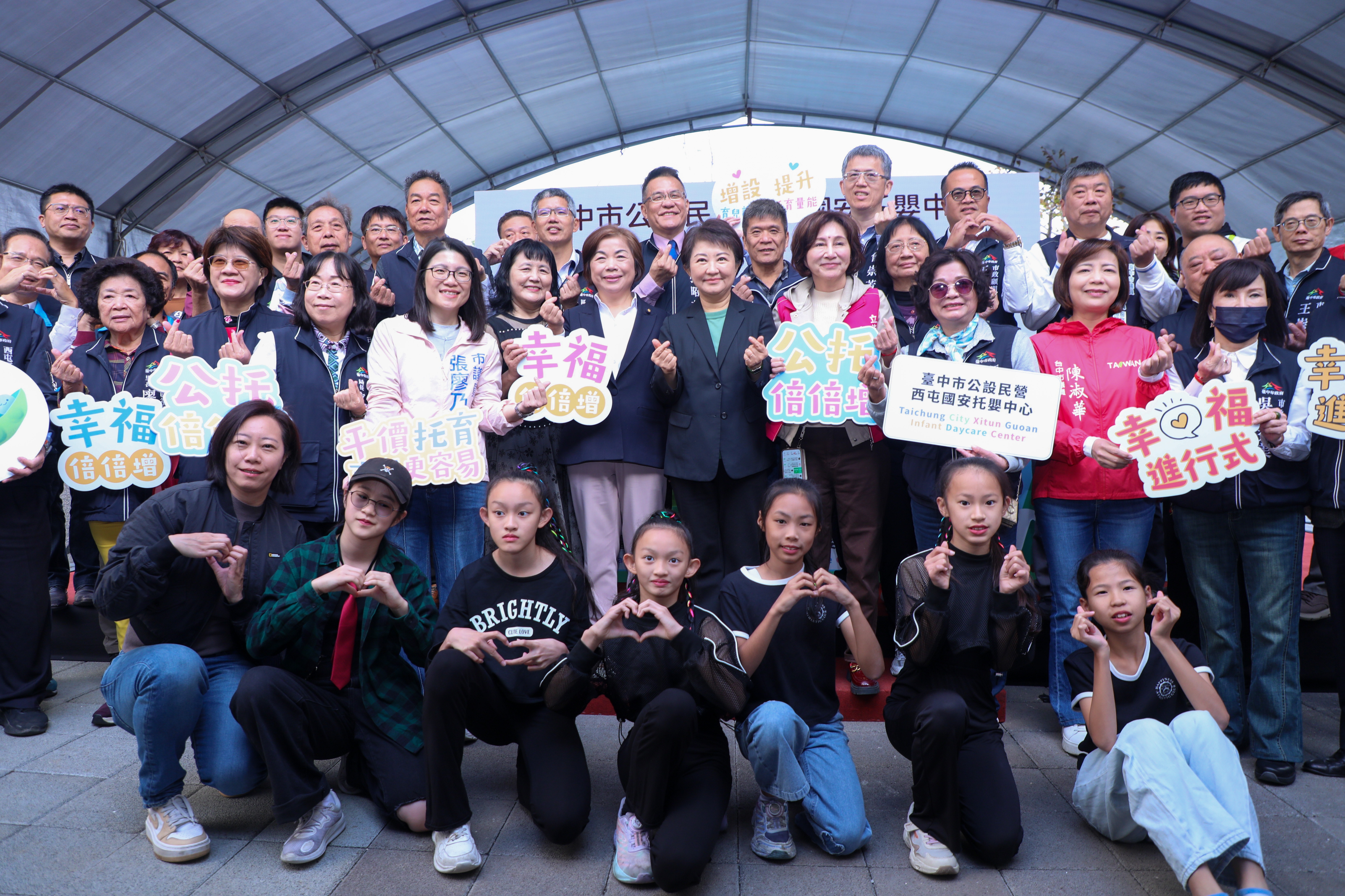 台中市西屯國安公托今(18)日歡慶開幕,市長盧秀燕開心宣布,這是台中市第6處好宅公托。為了鼓勵年輕人生養,台中市公托數量不但超越9倍增,新婚2年內夫妻及育有未滿6歲子女的家庭入住好宅比率更達14.7%,趕過中央5%的目標,打造育兒家庭的幸福好宅,更是送給市民最溫暖的耶誕禮物。