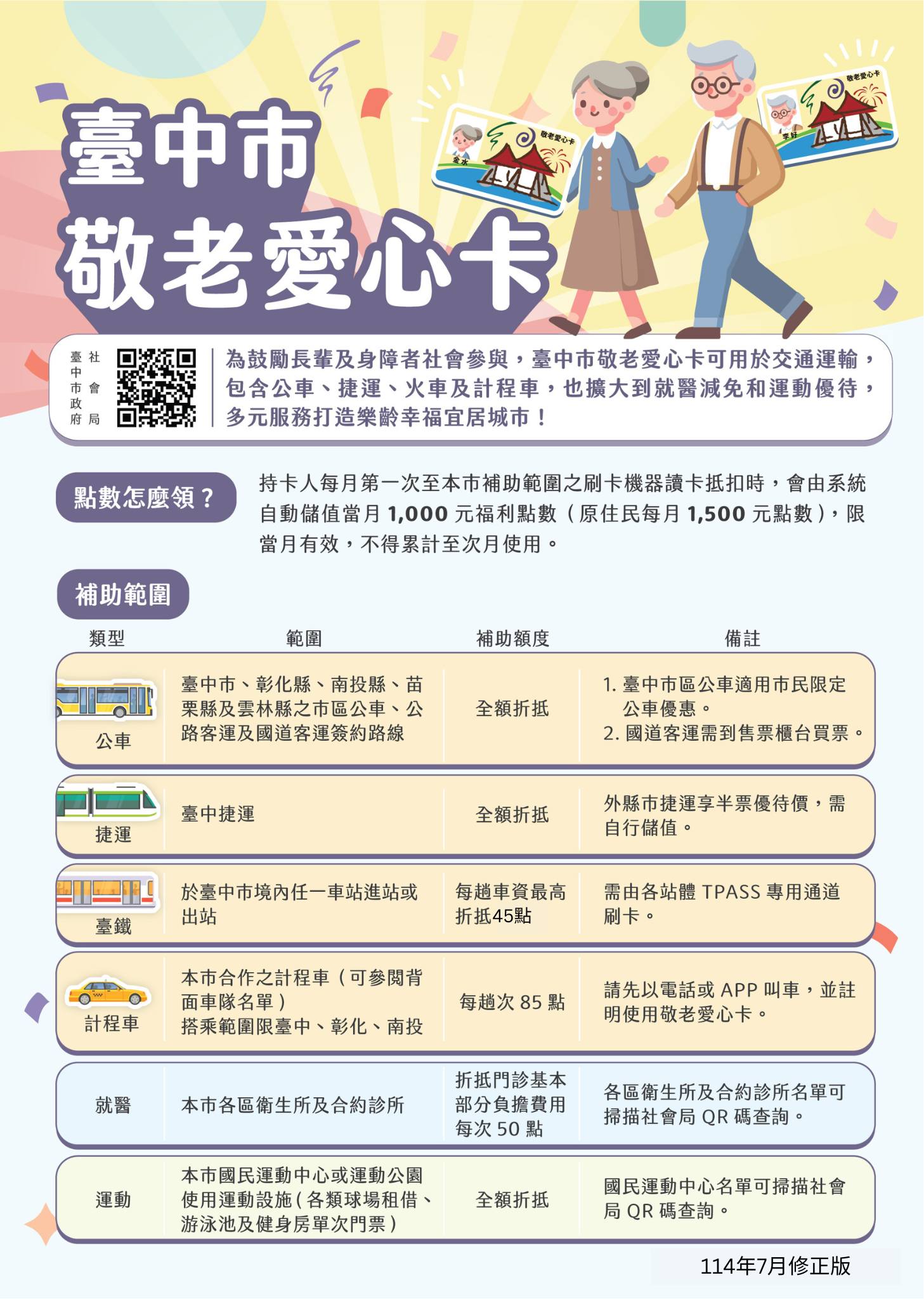 #點擊下方相關圖片,查看臺中市敬老愛心卡使用懶人包
