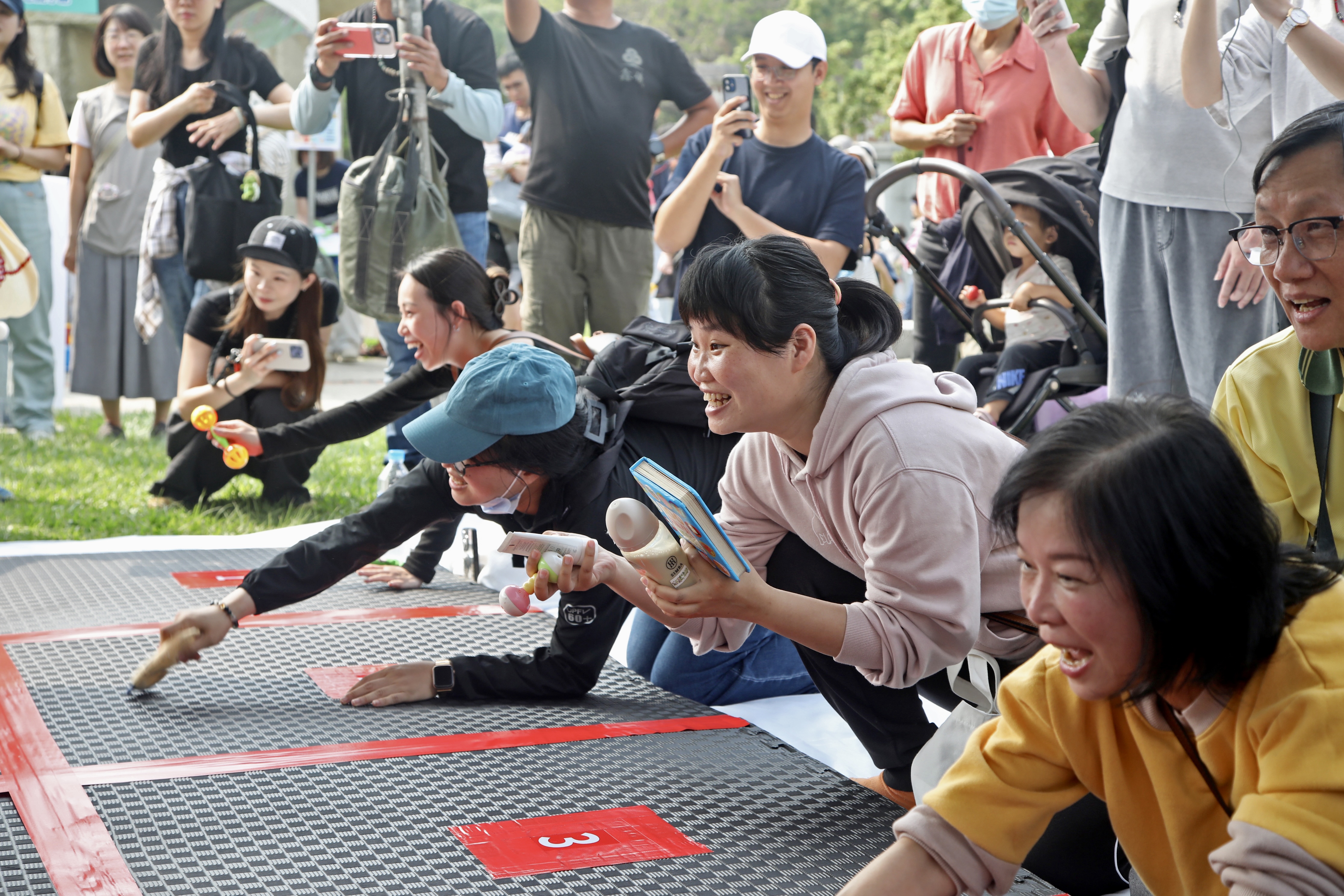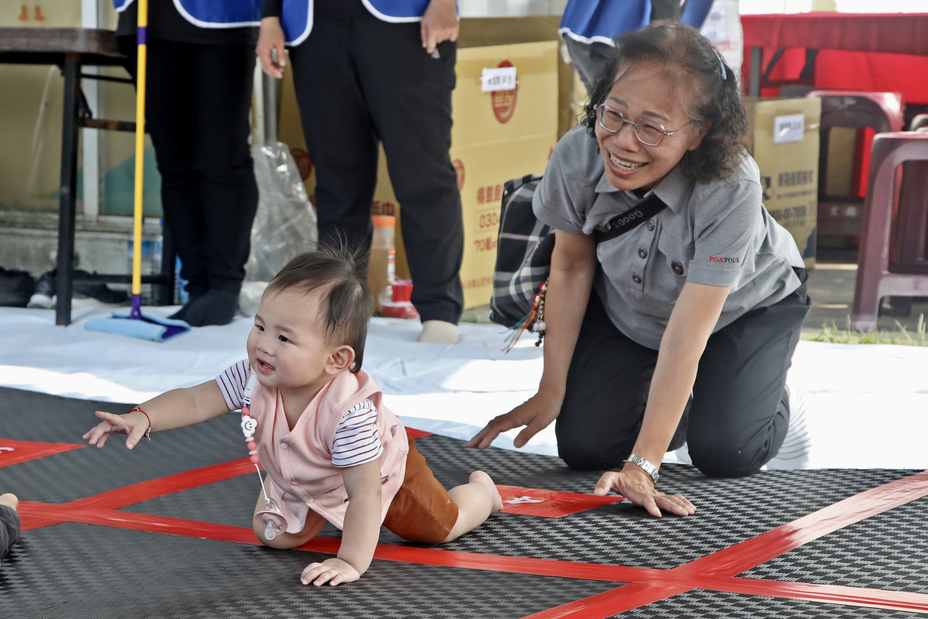 市府社會局於活動中規劃另一大亮點為寶寶爬行比賽,小小選手在家長與觀眾加油聲中奮力前進,有的直衝終點、有的被玩具吸引停下探索,逗趣模樣讓現場笑聲不斷;此外,親子完成闖關活動後可兌換限量魔術筆,也吸引許多家庭踴躍參與,增添互動樂趣。