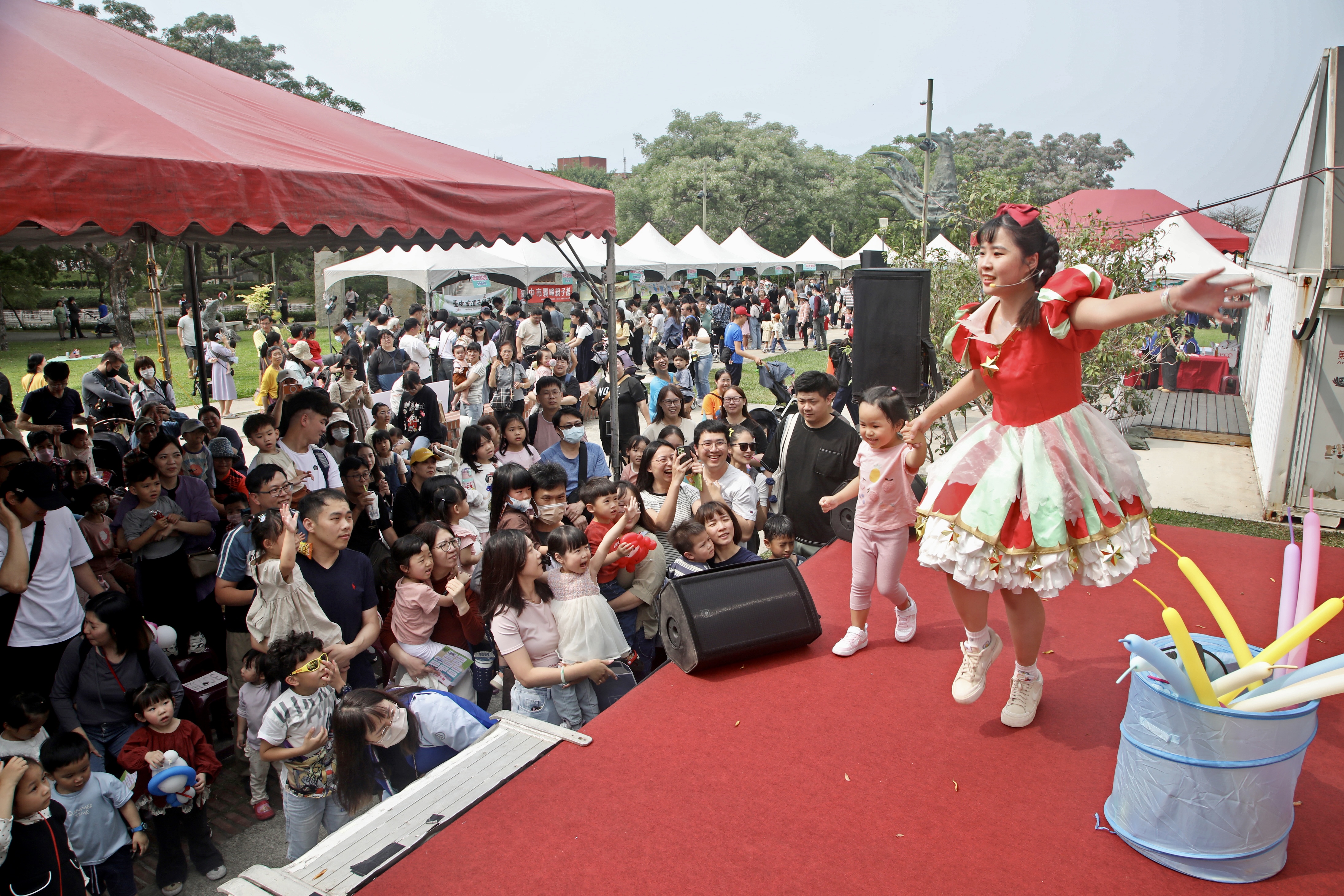 社會局表示,今年舞台活動內容豐富,包括親子帶動跳、氣球秀、扯鈴與溜溜球表演、互動魔術秀、立方體表演及繽紛泡泡秀等,演出結合近距離互動,讓親子沉浸其中,現場掌聲與歡呼聲此起彼落,氣氛十分熱絡。